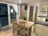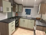 - Keuken en Meubilair: Inclusief afzuigkap, geïntegreerde koelkast met vriesvak, en een stijlvol MDF-keukenblok. De keuken in U-vorm biedt voldoende ruimte om te koken en op te bergen.