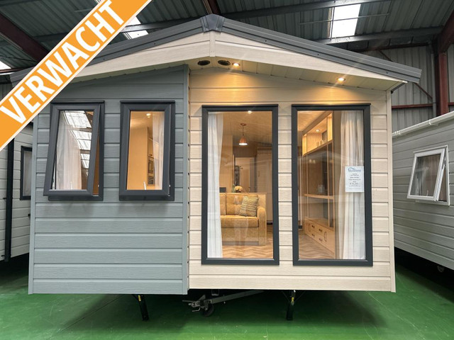 De Riviera is een luxe semi-chalet uit het hoogste segment. Met een standaardafmeting van 9,40 x 4,10 meter (ook leverbaar in 9,80 meter) biedt dit model alles wat je zoekt in een tweede verblijf: ruimte, stijl en comfort in elk seizoen.