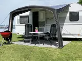 Standaard geleverd met luchtpomp en 2 stalen staanders om de wanden tegen de caravan aan te kunnen drukken.