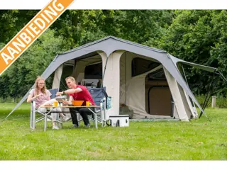 Zo is onder andere het tentdoek vernieuwd, is de instaphoogte van de tent hoger en liggen er heuse pocketveermatrassen op het bed!