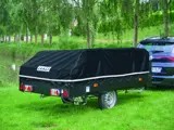 Tevens uitgevoerd met een zwarte wagenbak, zwarte keuken en zwart (verlengd) dekzeil; oftewel een ruime stoere, snel opzetbare vouwwagen!