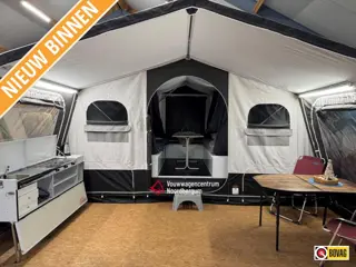 In verband met beperkte ruimte hebben wij deze Jamet Arizona in de showrom opgezet zónder voortent maar mét luifel en zijwanden.