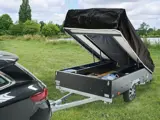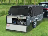 De zwarte wagenbak, zwarte dekzeil, zwarte keuken zorgt samen met de warme beige kleur doek afgewerkt met antraciet voor de moderne touch. De Dakota biedt twee tweepersoonsbedden, uiteraard mét lattenbodems en een tussenpad. Inclusief de 2-persoons ondertent is de vouwwagen al standaard voorzien van 6 slaapplaatsen. Door er nog een extra ondertent, uit onze eigen winkel, bij te kopen is er zelfs plek voor 8 personen. Verder is de ruime voortent een stuk gemakkelijker op te zetten dan de meeste symmetrische wagens.