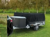 De vouwwagen heeft een zwarte wagenbak en een zwart dekzeil, oftewel een compleet stoer uiterlijk!