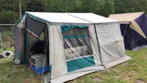 • Aandachtspunt 1: Het tentdoek dient gecontroleerd en eventueel opnieuw geïmpregneerd te worden (waterdichtheid).