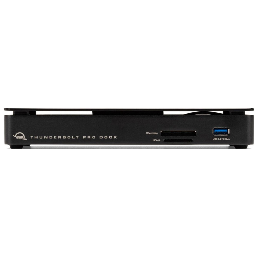 Deze dock heeft een Thunderbolt 3 hostverbinding naast een invoerpoort voor de meegeleverde AC-adapter. De Thunderbolt 3-poorten kunnen worden gebruikt voor daisy chaining of om verbinding te maken met displays, inclusief tot 4K-displays, of een enkel 5K- of 8K-display dat kan worden gebruikt via de DisplayPort 1.4-poort. De Thunderbolt Pro Dock is compatibel met macOS 10.13 tot 13, Windows 10 (64-bits) en 11, Windows Server 2016, en iPadOS 14 en 15.