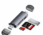 Jaster 6 In 1 multifunctionele USB 3.0 Card Reader U Disk Type-C/USB/TF/SD Flash Drive Memory Card voor adapter, telefoon, laptop en computer. Kleur is zilver.