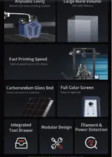 Features double thread Z-axis, up to 180mm/s printing speed, up to 100mm/s typical speed, and 6000rpm dual fans, this 3D printer can