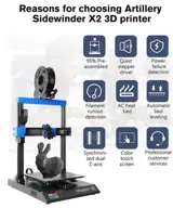 Artillery Sidewinder X2 3D Printer 300*300*400mm 95% Pre-Assembled Dual Z System TFT Touch Screen