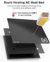 Rapid Heating AC Heat Bed - Lattice glass smooth surface, prints smoothly, easy release of printed objects. Fast and stable heating to 110 °C in 2 minutes.