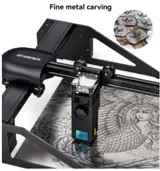 The laser adopts 4-fold lens group collimation and focuses technology, the optical power is 4.5~5.5W, the laser focus area is reduced to 0.02mm², the high-density laser can easily cut 10mm thick wood boards and 6-8mm black acrylic; Can directly engrave mirror stainless steel metal and ceramics.