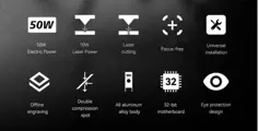 The ultra-fine laser focus area is reduced to 0.06*0.06mm, the high-density laser can easily cut 20mm thick wood, 15mm thick black acrylic; can directly engrave mirror stainless steel metal, ceramics, glass, and engraving &The cutting speed is 40% higher than the ordinary model, which can be comparable to the effect of the 150W CO2 laser engraving machine.