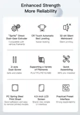 Comes with 2 Z-axis screws, each configured with 1 motor, to print more synchronously to minimize lines and ridges on the edges of your print and help you print delicate art piece.