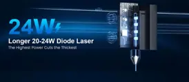 With the most advanced six-core laser technology, Laser B1 20W has a strong 20-24W optical output power, one of the most strongest available diode-laser today and thus a much stronger cutting ability. Laser B1 20W can cut through 15mm pine, 8mm black acrylic, and even 0.1mm stainless steel in one-pass, 20mm basswood and 35mm black acrylic in multi-passes.