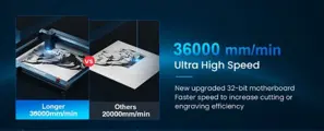 Laser B1 is equipped with a new 32 bit motherboard, which allows engraving speed up to 36,000mm/min, four times faster than ordinary laser engraving machines. In addition, TMC2209 silent drivers is used to effectively reduce the noise of operation, providing a faster and more enjoyable experience.
