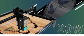 Longer RAY5 20W laser engraver adopts the highest power quad-core diode laser engraving and cutting, which can cut 0.05mm stainless steel sheets, and cut 10mm basswood, 15mm pine, and 8mm acrylic in one pass.