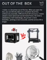 Unique extruder and special printing platform. QIDI's newly developed extruder, with a nozzle of 0.2mm,it can print the surface of the model more delicately, with an accuracy higher than that of the 0.4mm nozzle.The imates 3d printer will be equipped with one set of 0.4 mm extruder and one set of 0.2mm extruder.