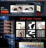 Adopting ultra-thin laser shaping technology, the laser focus of the S30 series is as thin as hairs and very powerful for engraving or cutting. The S30 Pro Max 20W pursues the ultimate cutting speed, suitable for professionals, shops, or factories.