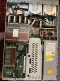 Moederbord, 2 harde schijf van 250Gb zijn geïnstalleerd. Alle memorie posities zijn ingenomen. Twee processoren met VRM geïnstalleerd.