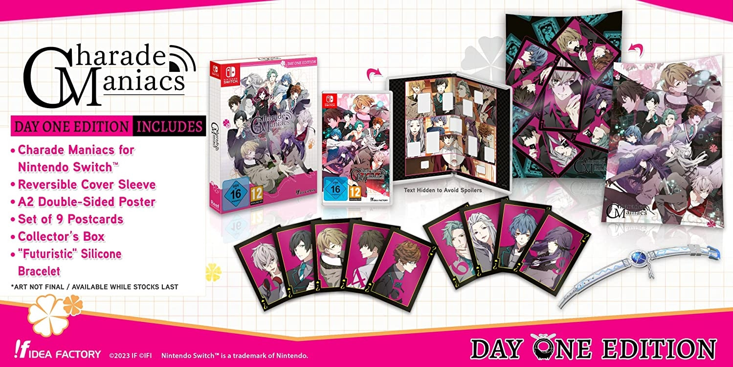 Een mysterieuze figuur ontvoert Hiyori Sena, brengt haar met negen andere ontvoerden naar een vreemde wereld en verwelkomt hen in een wereld genaamd Arcadia.Iedereen moet dramas uitbeelden om te kunnen ontsnappen, en dat allemaal terwijl hij de attributen van een verrader vermijdt.Voer je eigen onderzoek uit om naar aanwijzingen te zoeken - en vind onderweg romantiek!Van de schrijver van Psychedelica of the Black Butterfly, Uta Amamiya, en de illustrator van Norn9, Teita, wiens hand zal ze aan het eind nemen?Day One Edition bevat- Charade Maniacs for Nintendo Switch- Reversible Cover Sleeve- A2 Double-Sided Poster- Set of 9 postcards- Collectors Box- Futuristic Silicone Bracelet