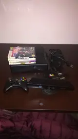 Console in goede staat met weinig gebruikssporen, compleet met alle kabels, 1 controller en camera en 4 spellen in perfecte staat met handleidingen. Games Kinect Aventuras, Kinet Sports, Dance Central, Pes 2012
