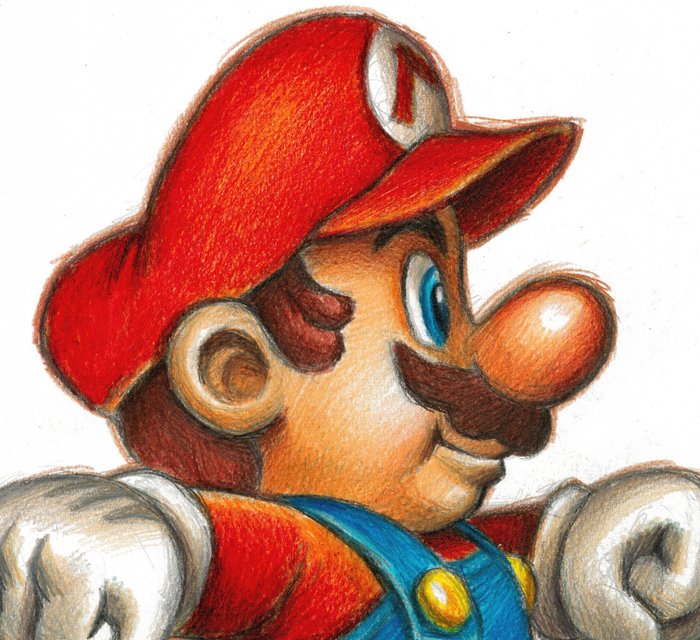 Deze originele tekening van Super Mario Bros. is gemaakt door de internationale kunstenaar Joan Vizcarra.