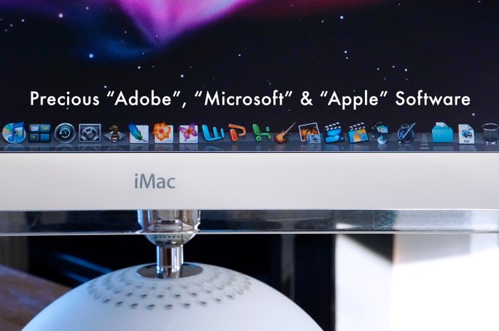 Het was Steve's visie om hardware en software met elkaar te verweven. Retro-computing zonder software is daarom – naar mijn mening – "zinloos". Daarom zitten al mijn Macs vol met "tal van voorgeïnstalleerde software van weleer", klaar voor gebruik - en om je een glimp van Apple's geschiedenis te geven. Deze 100% werkende en technisch gecontroleerde "Vintage" bundel wordt geleverd met "werkende software". bijv. Adobe Creative Suite 2 (inclusief de applicaties: "Photoshop, Illustrator, InDesign"), Apple Software (Keynote, Pages, iTunes, iPhoto, iMovie, Garageband, enz.) – en Office Suite voor MAC X (inclusief de applicaties: "Word, PowerPoint, Excel"). Verder: inclusief extra Value Pack (Sjablonen, Fonts, Clip-Arts, etc).