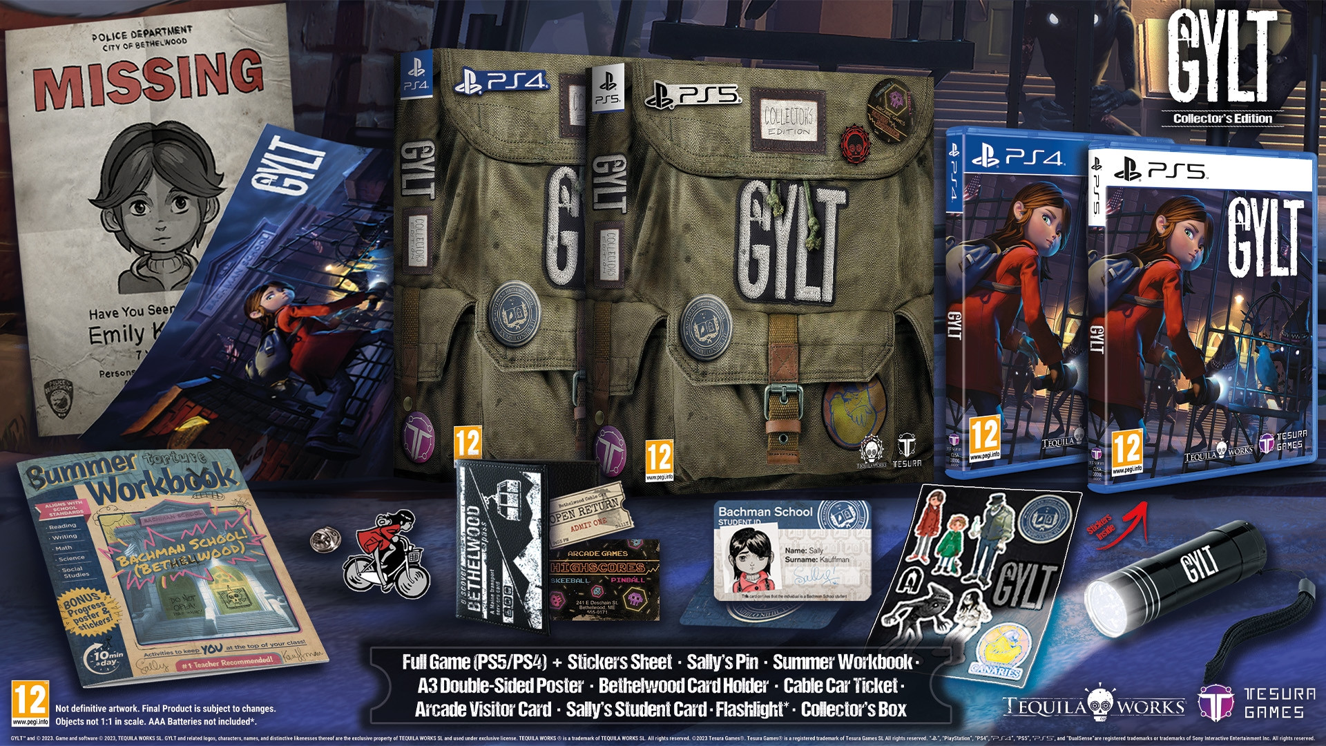 Vorm je angsten... Vrees de vormen. GYLT speelt zich af in een griezelige en broeierige wereld en is een beklijvend verhaal dat fantasie en realiteit vermengt op een surrealistische plek waar je nachtmerries tot leven komen. Verberg je voor vreselijke wezens of confronteer ze terwijl je je een weg baant door de uitdagingen van deze kwaadaardige wereld.Kenmerken - GYLT Standard Edition bevat een exclusief stickervel.- GYLT is een verhalend actie-, stealth-puzzel-avonturenspel dat zich afspeelt in een fictief mijnstadje in Maine.- Beleef het verhaal van Sally, een meisje uit Bethelwood. Haar leven is niet gemakkelijk, en het is zelfs nog moeilijker geworden sinds de verdwijning van haar nicht Emily. Nadat ze is achtervolgd door een groep pestkoppen, wordt Sally meegesleurd in een verwrongen versie van haar stad waar haar angsten en donkerste herinneringen zich op verwrongen en zeer rele manieren afspelen.- Verken de wereld om je heen en ontdek het mysterie achter Emilys verdwijning.- Kies ervoor om wezens onder ogen te zien of je voor ze te verbergen, net zoals je je angsten onder ogen ziet of ervoor wegrent.- Je kunt voorkomen dat je door de wezens wordt opgemerkt, je kunt strategien bedenken om ze af te leiden door middel van geluiden, kunstaas of door ze aan te trekken.- Soundtrack van Cris Velasco.Collectors Edition bevat- Volledig spel met Stickervel- Zomerwerkboek - Pin van Sally- Bethelwood-kaarthouder- Kabelbaankaartje- Arcade-bezoekerskaart- Sallys studentenkaart- Dubbelzijdige A3-poster vermist en hoofdart- Zaklamp (AAA-batterijen niet inbegrepen*)- Collectors Box met rugzakthema