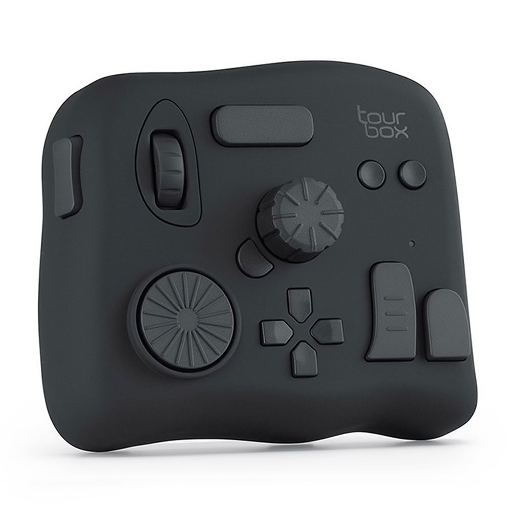 De TourBox Neo kan ook worden ingesteld om samen te werken met muizen, toetsenborden en grafische tablets. Een veel voorkomende workflow is het gebruik van de controller met één hand en een muis met de andere. Het compacte, ergonomische ontwerp heeft verschillend gevormde knoppen op verschillende plaatsen, zodat je ze gemakkelijker op de tast kunt vinden. In totaal zijn er knoppen, draaiknoppen, scrollwielen, knoppen en functieknoppen die onafhankelijk of in combinatie kunnen worden bediend. Je kunt tot 42 handelingen instellen als sneltoetsen of ingebouwde functies. Voor geselecteerde software kunnen vooraf ingestelde configuraties worden geïmporteerd uit de TourBox software, die als gratis download wordt geleverd voor Mac en Windows. De TourBox Neo kan meerdere preset-configuraties beheren en je kunt ertussen schakelen.