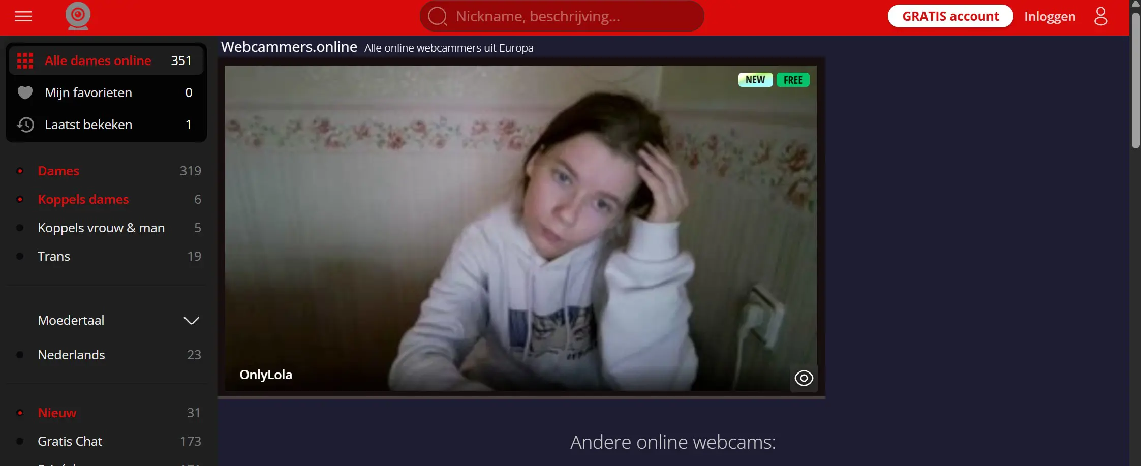 Op de Homepagina staan alle vrouwen die gratis webcammen!
