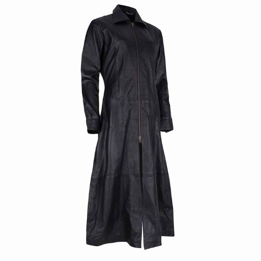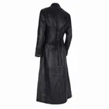 Aparte leren lange jas model matrix voor dames. Heeft een op maat verstelbare corset sluiting achter om strak aan te kunnen trekken.