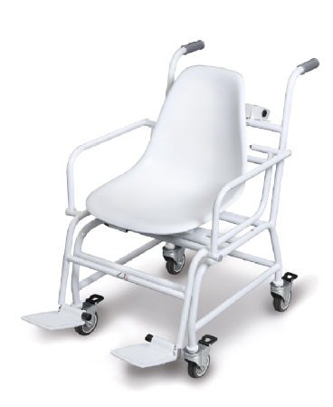 - ergonomische gevormde weegstoel met omklapbare armleuningen en voetsteunen.