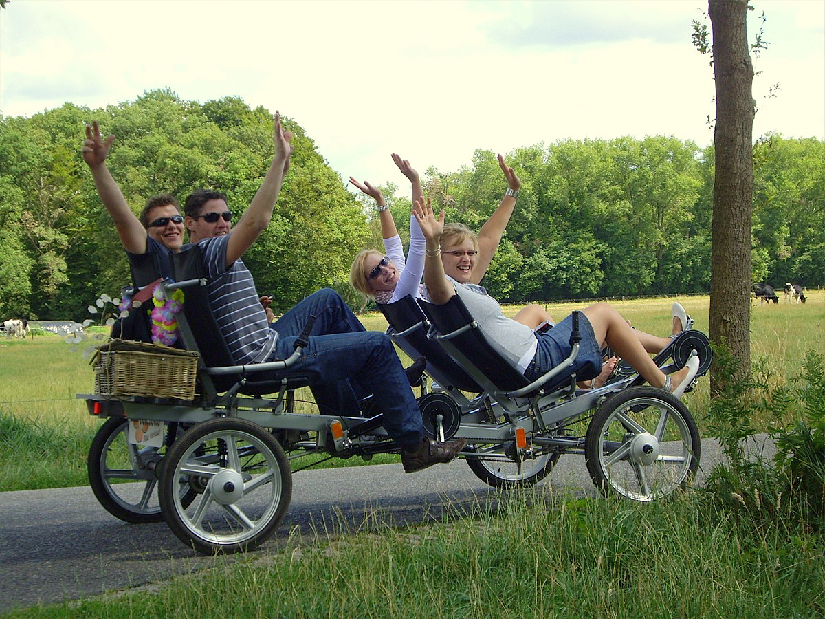 Velorette biedt u leuke en unieke uitjes aan met de meermans 4 persoons-recreatiefiets. Fietsen door de Achterhoek, maar dan geheel vernieuwend! Stap eens op de Velorette recreatiefiets! Gezamenlijk een toertocht maken, en iedereen kan mee! Geschikt voor jong en oud.