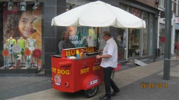 Onze hotdogfiets wordt meestal ingezet voor feesten in een kleinere ruimte, maar ook geschikt voor de grotere ruimtes. De hotdogfiets heeft door zijn "American Style" uitstraling een grote aantrekkingskracht op uw gasten/ klanten. Wie wil nu niet een Hotdog, die men zelf zo lekker mogelijk mag maken. Ruime keuze uit sauzen & garnering.