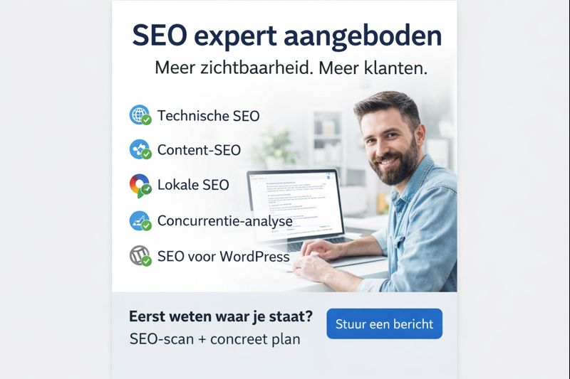 Eerst weten waar je staat? Ik kan starten met een SEO-scan en een concreet verbeterplan.