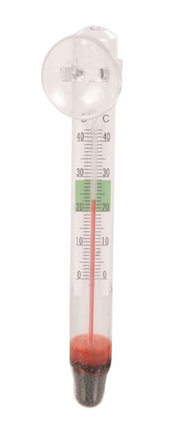 227-103852: Europet Glas Thermometer: Een simpele maar zeer betrouwbare glasthermometer om het aquariumwater in de gaten te houden.De thermometer heeft een bereik van 0 tot 50 graden (0 tot 120 Fahrenheit) en is door zijn kleine ontwerp en bijgeleverde zuignap zeer gemakkelijk in een hoek van uw aquarium weg te stoppen. Zichtbaar voor u maar niet te opvallend/ belemmerend in het aanzicht van het aquarium.Doordat de glasthermometer blijft drijven indien deze los zou geraken van de zuignap hoeft u niet met uw arm diep in het water tussen de planten en grind meer te zoeken!   Technische informatieBereik: 0-50 Graden of 0 tot 120 FahrenheitInclusief: Zuignap voor simpele bevestiging