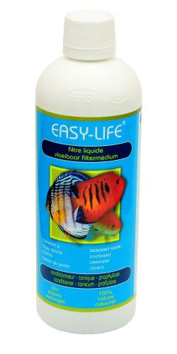Easy-500: Easy Life Vloeibaar Filtermedium (vfm) 500ml: Easy-Life vloeibaar filtermedium (Easy-Life vfm) behoort tot een totaal nieuwe produktgeneratie in de vivaristiek. Het is voor zoveel zaken inzetbaar, dat een bepaalde benaming het produkt nooit geheel beschrijven kan. Easy-Life vfm : -is 100% natuurlijk & veilig -bevat geen chemicalien, bakterien of andere organische toevoegingen -is krachtig werkzaam in zoet- en zeewateraquaria, vijvers en paludaria -lost vele problemen op : zowel vaak voorkomende als bepaalde zeldzame problemen -geeft een zeer veelzijdige bescherming -vertoont tientallen krachtige werkingen in zoet- en zeewater -vissen eten meer, worden actiever en kleuren krachtiger-sterke anti stress werking-voorkomt algvorming-koralen openen en groeien sneller-biofilters werken effectiever-verwijdert vieze geurtjes-water wordt zeer helderVoorbeelden Easy-Life vfm werkingen in zoet- en zeewatersystemen : betere en stabiele waterkwaliteit, versnelt het opstarten van nieuwe aquaria, verwijdert chemicaliën, medicijnresten, chloor, ammonium, zware metalen en vele andere contaminanten, betere plantengroei, jonge vissen groeien sneller, koralen groeien beter, voorkomt algenvorming, ontstresst effectief vissen en lagere dieren, neutraliseert schadelijke bacteriën, kweekbevordering, en nog veel meer. Met Easy-Life vfm wordt veel leed en sterfte vermeden bij zoet- en zeewaterdieren gedurende transport en quarantaine, na een medicijnbehandeling, bij verwondingen en bacteriele infecties, bij kalamiteiten zoals stroomuitval, enzovoort. De mortaliteit van vissen en lagere dieren wordt ermee sterk gereduceerd. Dit alles met een totaal natuurprodukt waarmee geen chemicalien, bacterien of andere organische toevoegingen in het water worden gebracht. In Easy-Life vloeibaar filtermedium zijn meer dan 30 werkingen versmolten, zonder enige negatieve bijwerkingen te veroorzaken Technische informatieInhoud: 500ml behandelt tot 1500 literDosering: 10ml per 30 liter. 1>
