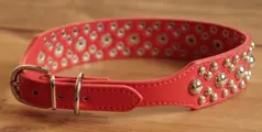 Leren hondenhalsband " Conical studs " Rood