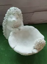 Egels met water bakje.hoog 29 cm x breed 23 cm x lang 39 cm.winter bestendig beton.wit beton.art nr : 0442.Leuk om kado te geven of te krijgen.wees er snel bij want op is op