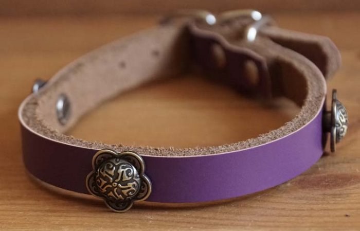 Leren hondenhalsband " Concho bloem " Paars