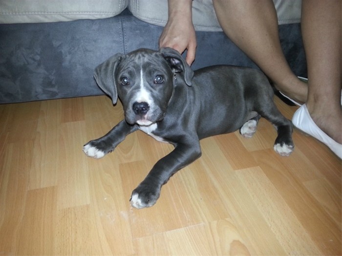 mooie americaanse stafford blauwe schijn op de huid en grijs