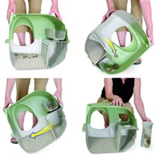 De zelfreinigende kattenbak hoeft enkel gekanteld te worden en de uitwerpselen en klontjes komen in de lade, die geleegd kan worden in de afvalbak.