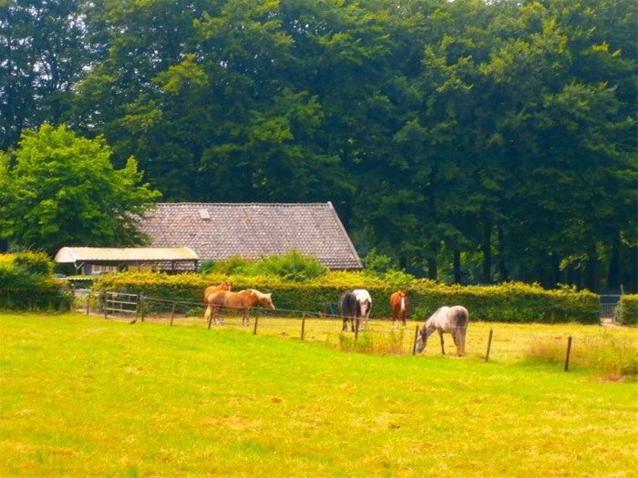 Gedurende zomermaanden staan ze 24/7 in de wei. Direct gelegen aan ruiterpad!