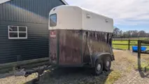 We bieden onze 2-paards paardentrailer uit 1977 te koop aan. De trailer heeft veel binnen gestaan, maar staat nu hopeloos in de weg.