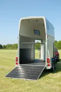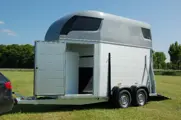 Deze paardentrailer is leverbaar met een aluminium of houten opbouw.