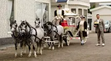In de prijs is dan inbegrepen de tijd die wij nodig hebben om in de ochtend de pony's te wassen, eventueel het geheel op te laden in de vrachtauto en naar de plaats van bestemming te rijden. Daar aangekomen gaan wij alles lossen en de pony's inspannen en rijden dan naar de begin locatie toe. Dan ziet u ons op locatie als wij voor u aan het rijden zijn. Als we bij u klaar zijn gaan we terug naar de vrachtauto en spannen wij de pony's uit en laden wij de koets weer op de auto. Thuis aangekomen worden en pony's en koets weer uitgeladen de pony's verzorgt en de koets en tuigen weer schoongemaakt.
