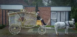 De Droomkoets. Met gepaste trots presenteren wij u hierbij onze rouwkoets: ‘De Droomkoets’, omdat helaas aan ieder sprookje ook een einde komt. Met onze Sprookjeskoetsen hebben wij al vele mooie gebeurtenissen mogen begeleiden en hebben wij de eer gehad om van die speciale aangelegenheden deel uit te mogen maken. Over het algemeen waren dit allemaal feestelijke ervaringen, maar soms maken wij ook deel uit van de minder fijne gebeurtenissen in het leven. Iedereen wordt vroeg of laat geconfronteerd met het overlijden van een dierbare. Een ingrijpende gebeurtenis die een rollercoaster aan emoties met zich meebrengt. Wij zijn van mening dat het afscheid van een geliefde ook op een gepaste en bijzondere wijze moet kunnen plaatsvinden. Omdat de Sprookjeskoets op zulke momenten wellicht niet de juiste koets is, hebben wij de afgelopen jaren gewerkt aan het ontwikkelen van ‘De Droomkoets’; een sprookjesachtige rouwkoets, uniek in heel Europa. Met De Droomkoets kunnen wij het vervoer op de dag van de uitvaart voor u verzorgen. Door de betoverende werking van de feeërieke witte pony’s die de koets trekken, wordt uw dierbare met De Droomkoets op een waardige maar toch bijzondere wijze naar de laatste rustplaats vervoerd. De koets wordt getrokken door 2 of 4 pony’s en kan bij iedere uitvaart door heel Nederland worden ingezet. Wij werken met prachtige feeërieke witte pony’s dit heeft op kinderen een bijzondere aantrekkingskracht. En heeft een positieve uitwerking op de uitvaart voor zowel broertjes zusjes of andere betrokken kinderen denk hier aan de klas, sportclub of verdere familie. Dit omdat het zoals wij ook al ervaren hebben op andere gebeurtenissen voor kinderen fijn is de dieren recht in de ogen aan te kijken. Ook door de verhoudingen van de Droomkoets en de pony’s zal de kist met de overledene niet wegvallen in de grote rouwkoetsen die door paarden getrokken worden. Naast onze bijzondere rouwkoets ‘de Droomkoets’ kunnen wij ook in de zelfde feeërieke stijl volgkoetsen leveren om het voor familie(broertjes of zusjes) mooi te kunnen aansluiten Bij de rouwkoets Hoop u hiermee op een gepaste wijze onze ‘Droomkoets’ aan u gepresenteerd te hebben Mocht u meer informatie willen dan kunt u altijd contact met ons opnemen.