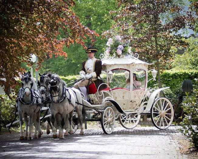Ook voor bruiloften en andere speciale gelegenheden is ons rijtuig bijzonder geschikt. Dankzij een twee- of vierspan prachtige pony's en een koetsier in officiële koetsiersuitrusting belooft de Sprookjeskoets op iedereen een diepe indruk achter te laten!