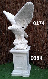 Adelaar met zuil.Hoog 98 cm samen.Wit beton.Prijs samen 102,50 euro.Foto nr 0174 + 0384.