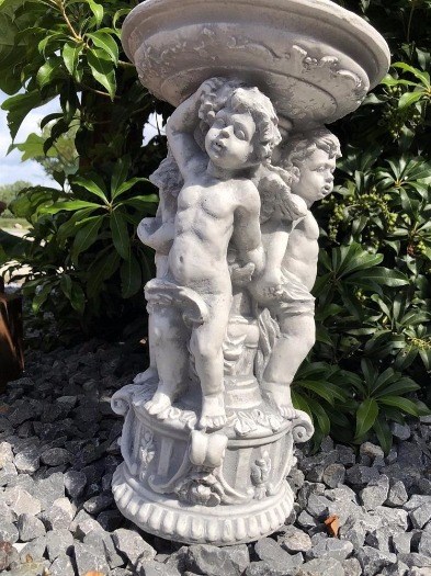Mooie zware vol stenen schaal, vogelbadje, voorschaal met veel detail versieringen"dragende engelen", echt fainerend om naar te kijken!!